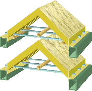 Einzelner Stützaufbau in zwei Dachebenen